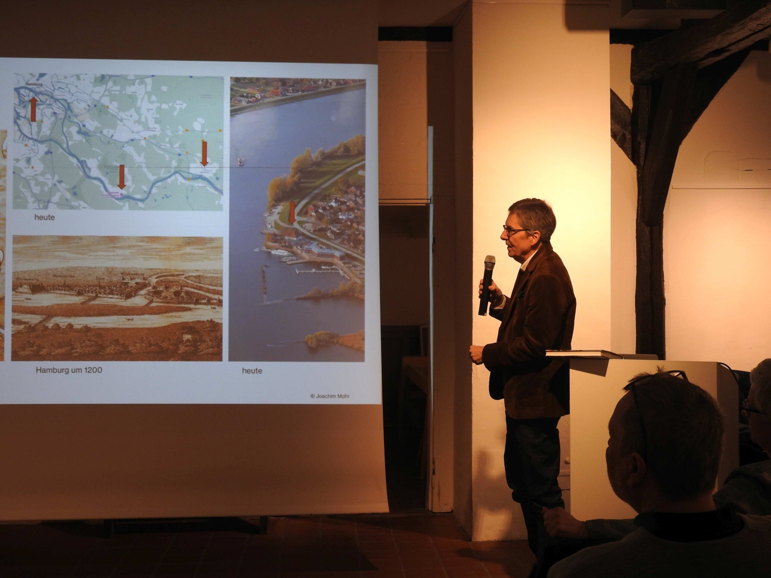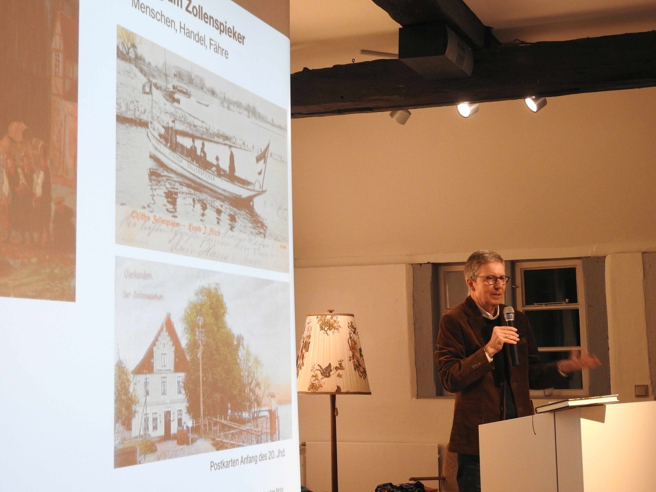 Und wieder volles Haus im Krügerschen Haus! Kein Wunder: Selbst Geesthachter Geschichtskundige erfuhren viel Neues im Vortrag von Joachim Mohr. Anschaulich präsentierte der Autor und langjährige SPIEGEL-Reporter die fast 800 Jahre alte spannende Geschichte des Zollenspieker Fährhauses.