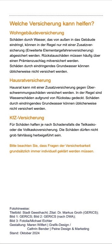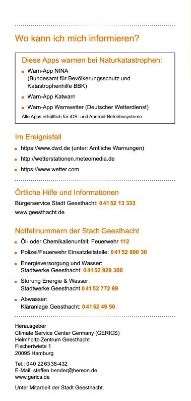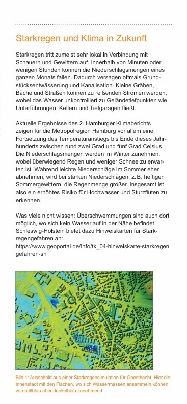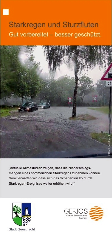 Die folgende Galerie zeigt den Flyer über Starkregen in Geesthacht, herausgegeben vom GERICS unter Mitarbeit der Stadt Geesthacht.